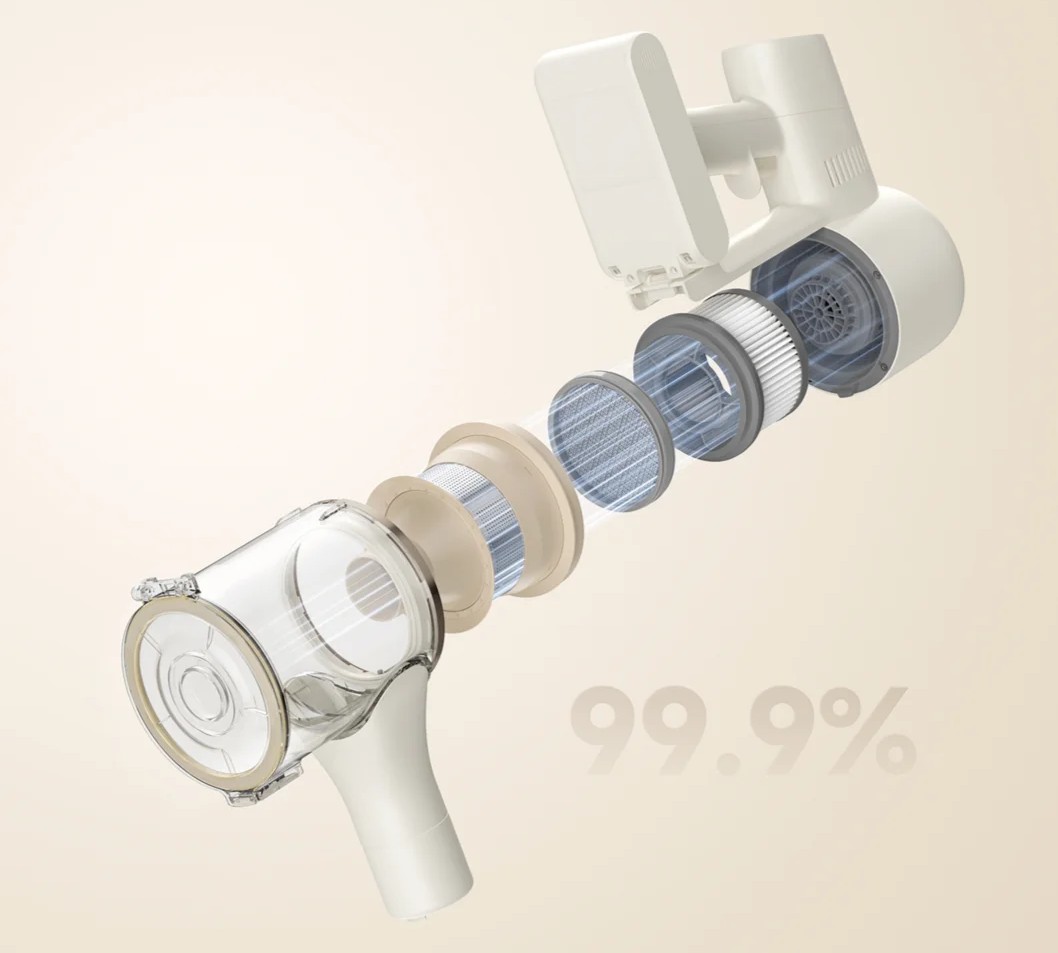 Пятиступенчатая система фильтрации включает многоконусный циклонный блок, сетчатый фильтр, HEPA-фильтр и губчатый элемент. Вместе они эффективно удерживают даже самые мелкие частицы пыли, не давая им возвращаться в воздух. Такая система делает R10s безопасным выбором даже для людей с аллергией. Все фильтры можно промывать под проточной водой, обеспечивая долгий срок службы.
