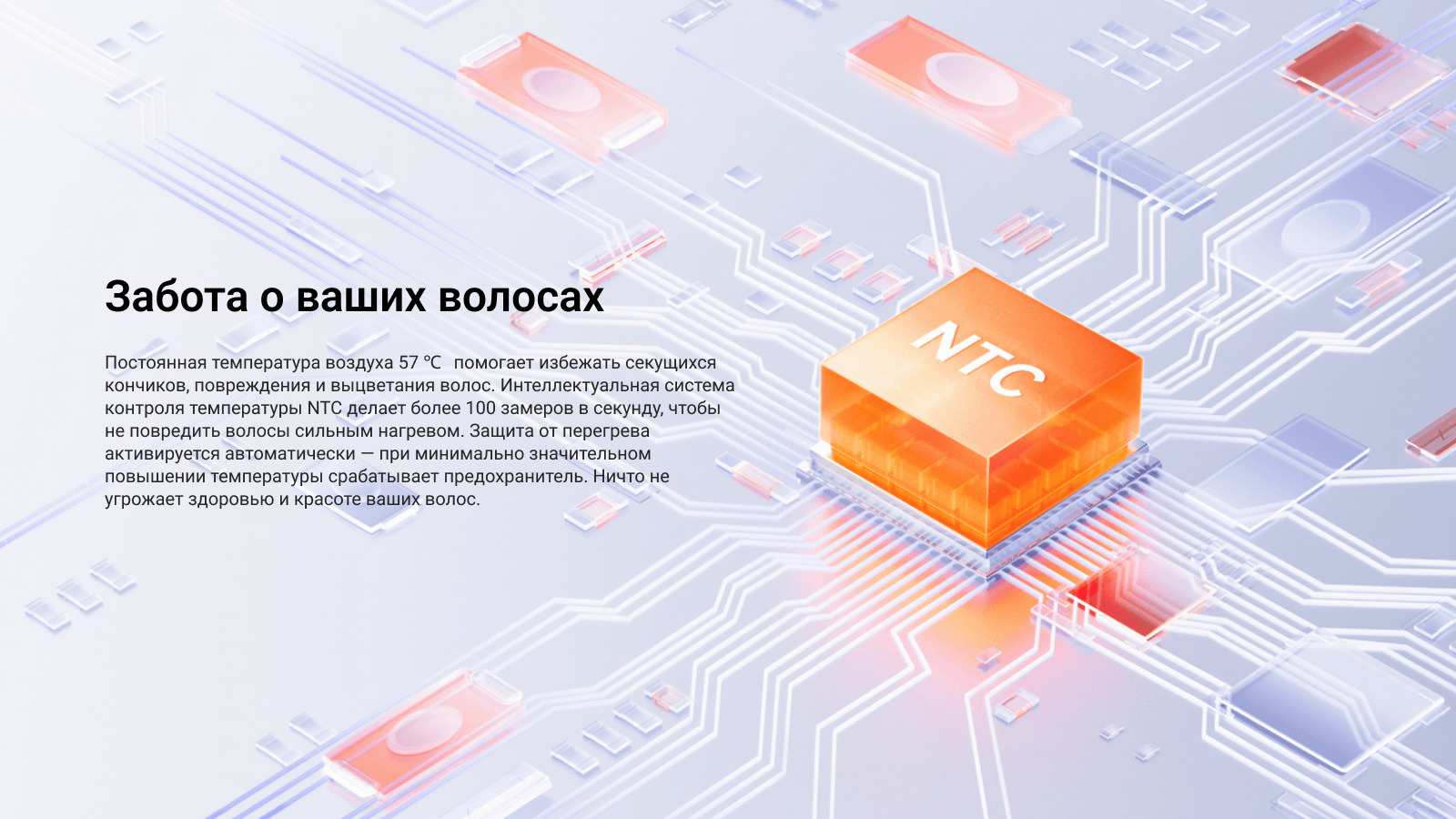 Особенностискорость мотора 130000 об/мин, шумоподавление, интелектуальный контроль температуры, эмиттер анионов, магнитная вращающаяся на 360° насадка