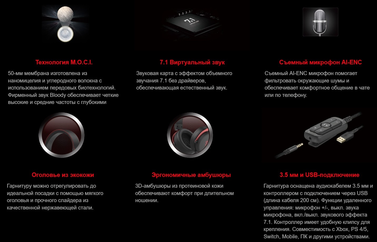 | Особенности, дополнительно | диаметр мембраны излучателей 50 мм, тканевая оплетка кабеля, длина кабеля 1 м, шумоподавление микрофона |