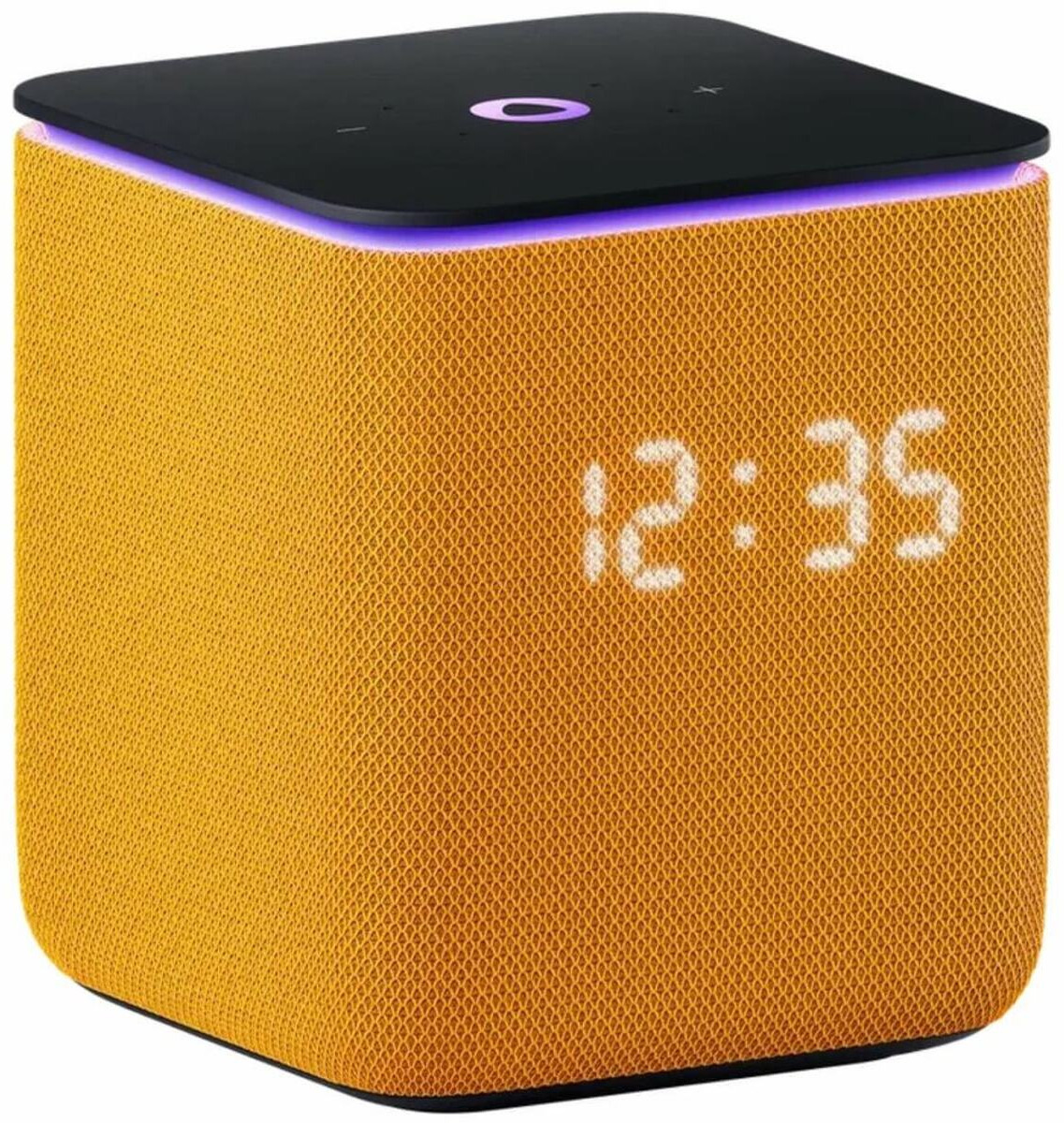 Приятный корпус с тканевой отделкой, доступный в разных расцветках текстильной части, не только придает колонке стильный внешний вид, но и создает приятные тактильные ощущения. Он также защищает динамики и слегка смягчает звук, а встроенный экран эффектно светится прямо на текстильной стороне.