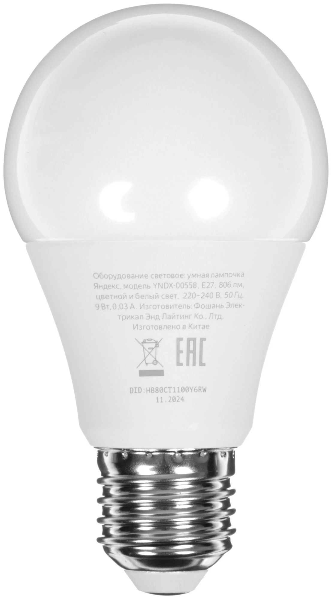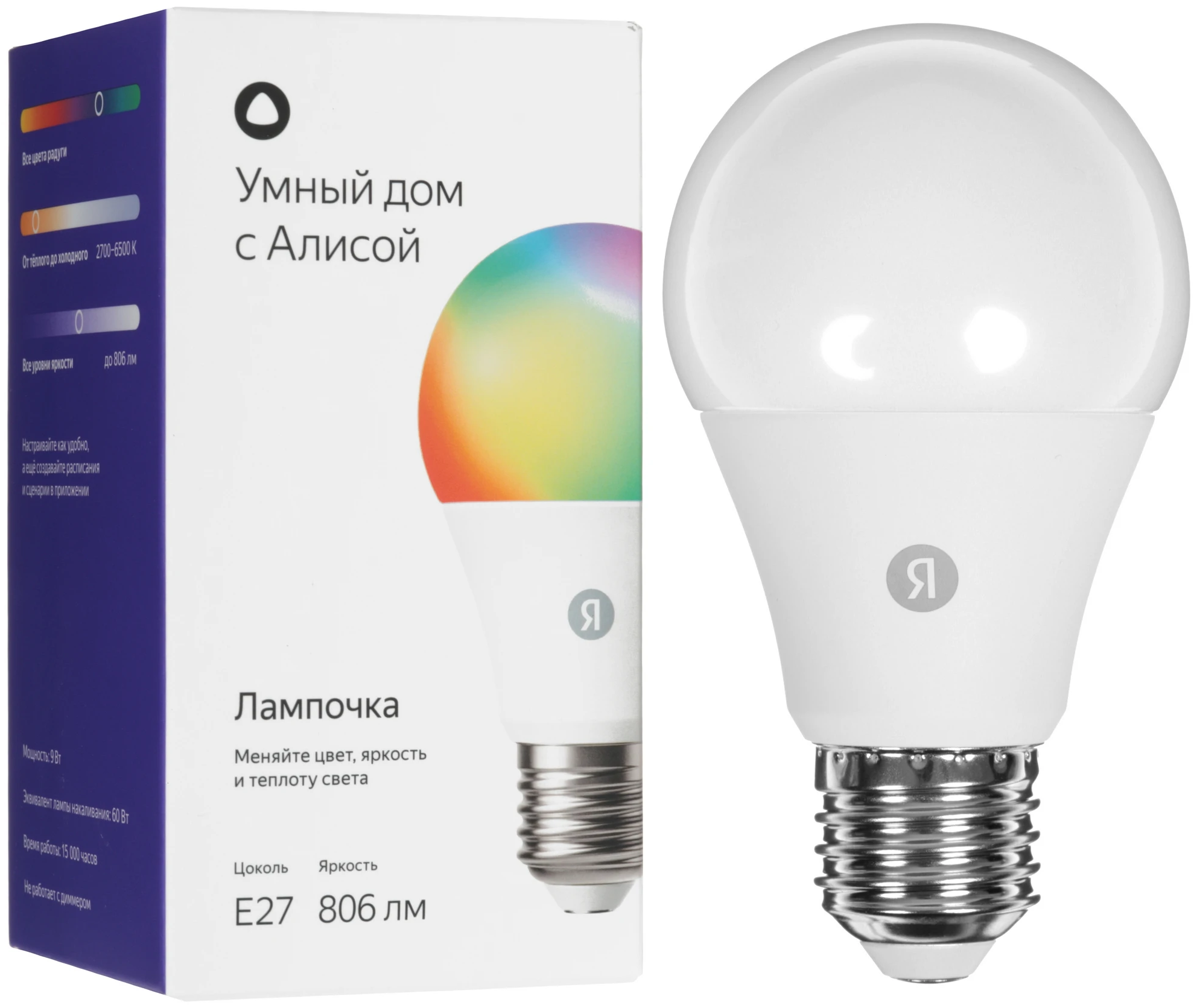| Особенности | RGB, работает с Алисой, яркость 806 лм, регулировка яркости, управление цветом, управление оттенками |