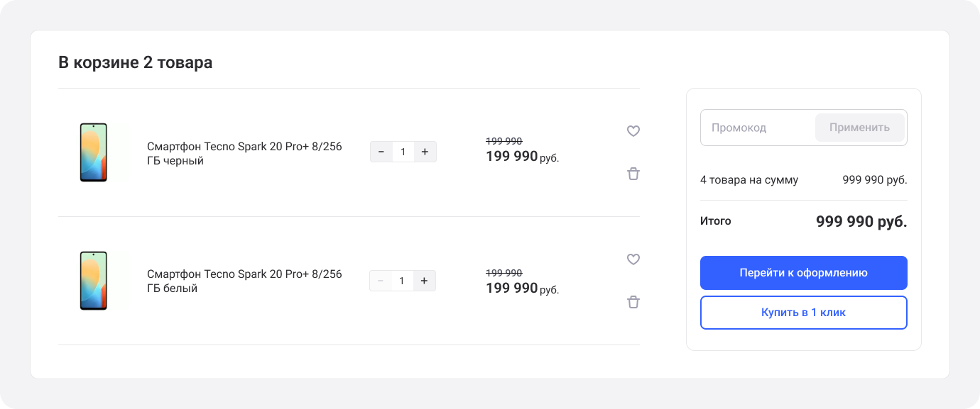 1. Выберите товары и добавьте их в корзину